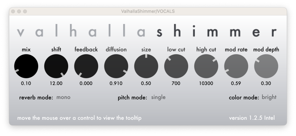 Out of all of the Valhalla plugins, this is one of my favorites for vocals and sounds that need more shininess in the highs or mid highs. It adds resonances to the top end of a sound, resulting in a unique reverb that highlights tones you probably wouldn’t normally hear, but creates a really distinct sound.