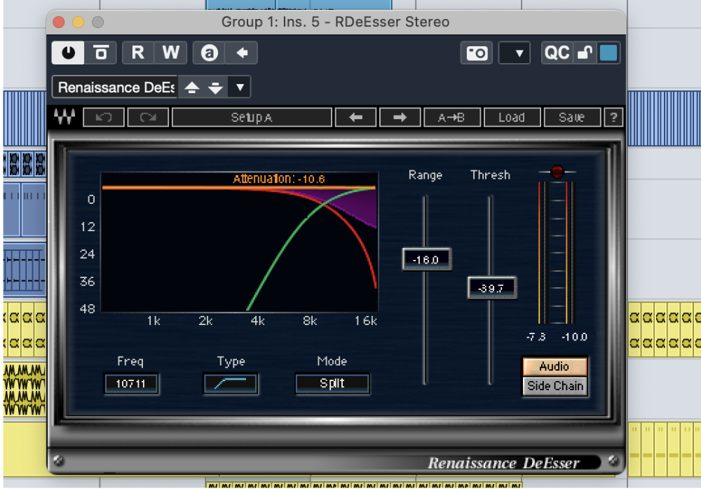 Third goes Waves RDeEsser, to make high freq sound more soft (letter s)