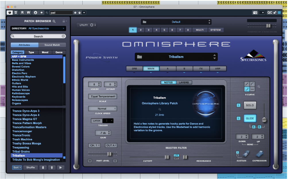 Speaking about main jumpy bass, I use Omnisphere synth and searching for arp sequence sounds. I found the bass, which I individually edited and I created the main track bassline.