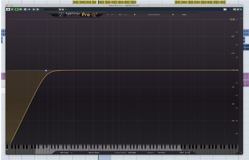 First plug in goes Fabfilter Pro-Q2 cut low freq