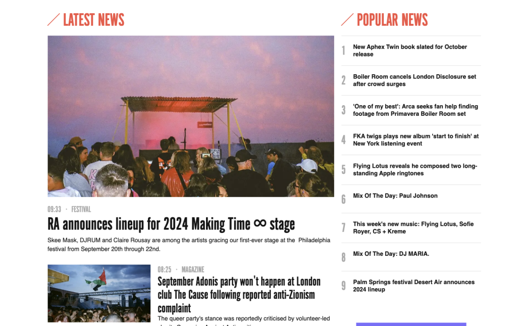 It’s a massive hub for events happening worldwide, with a rotating selection of news that highlights both smaller, independent underground acts in the house and techno scenes, as well as other niche pockets of the dance music industry. Resident Advisor is an essential resource for news, events, mixes, and culture, and it should definitely be on the radar of anyone who is into techno music and looking to stay current with today’s techno culture.
