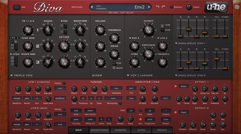 U-he Diva is a powerful virtual analog synthesizer that brings the warmth and character of classic hardware synths right to your computer. It models components from vintage synths, giving you the characteristic sound of analog without the needs of physical gear