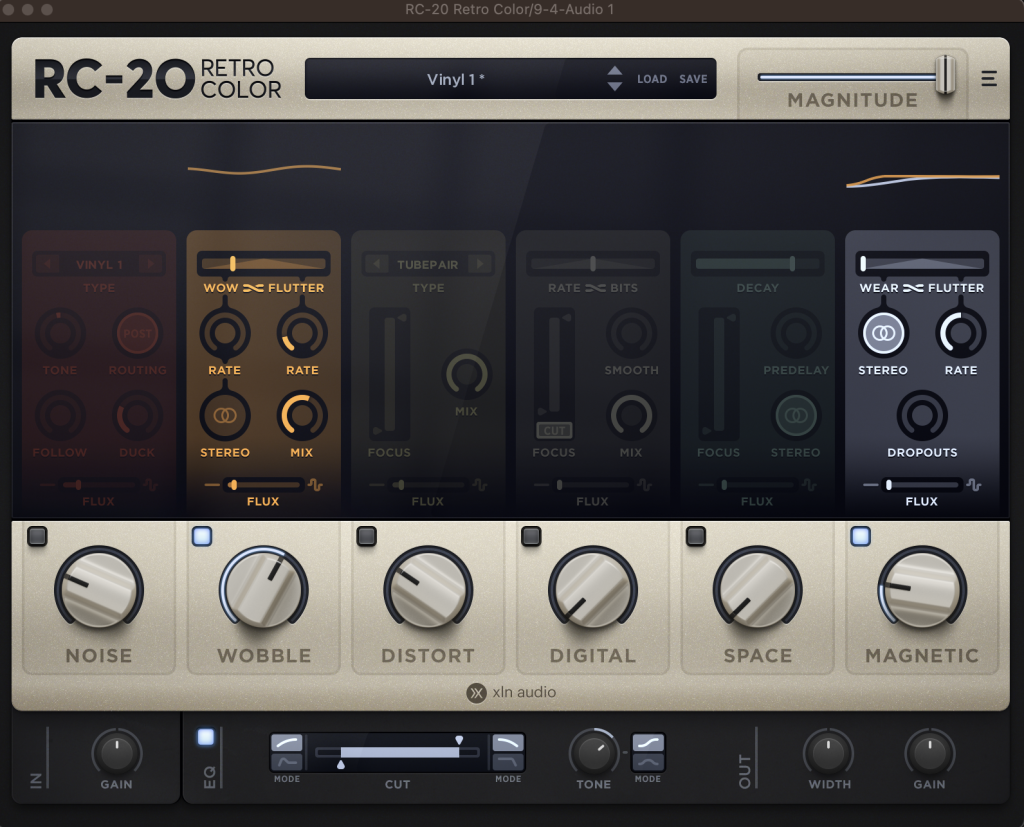 I use this track on all kinds of instruments and even sometimes on the mix bus to give digital sounds a more retro feel. The perfection of digital recording can get a bit dry and tools like the RC-20 give pitch a bit more waver and get rid of things that are too clean and high end. I used it on the acoustic guitar in this track as well as the electric guitar.