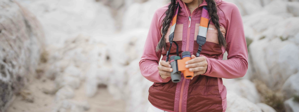 This collaboration was born from the shared values of Nocs Provisions and Cotopaxi, both brands dedicated to sustainability and celebrating the natural world. As a result, the Nocs Provisions x Cotopaxi binocular bundle is designed for explorers who want to connect with nature while supporting environmentally responsible products. The custom neck strap, made using Cotopaxi’s leftover deadstock fabrics, is colorful and reflects Cotopaxi’s commitment to reducing waste and promoting circularity in design.