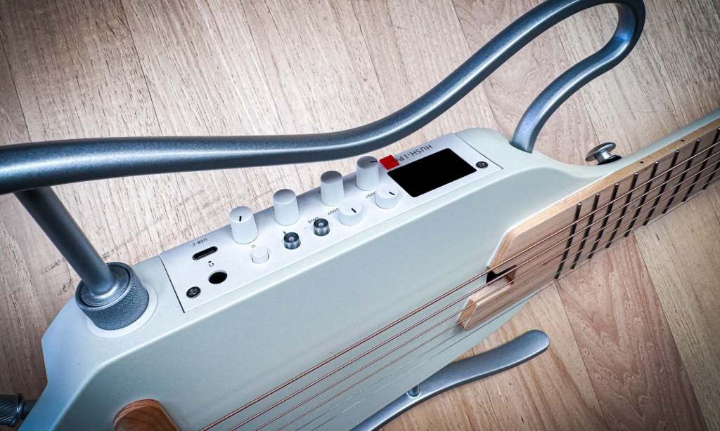 The Hush 1 Pro is an innovative design pushing the boundaries, boasting a headless, travel-friendly design that’s as practical as sleek. The removable skeleton frame clicks into place effortlessly, and you can assemble it in under 30 seconds—a feature that screams convenience for the traveling musician. This guitar can go anywhere with you and is so small it will easily fit in the overhead bin on your next flight.