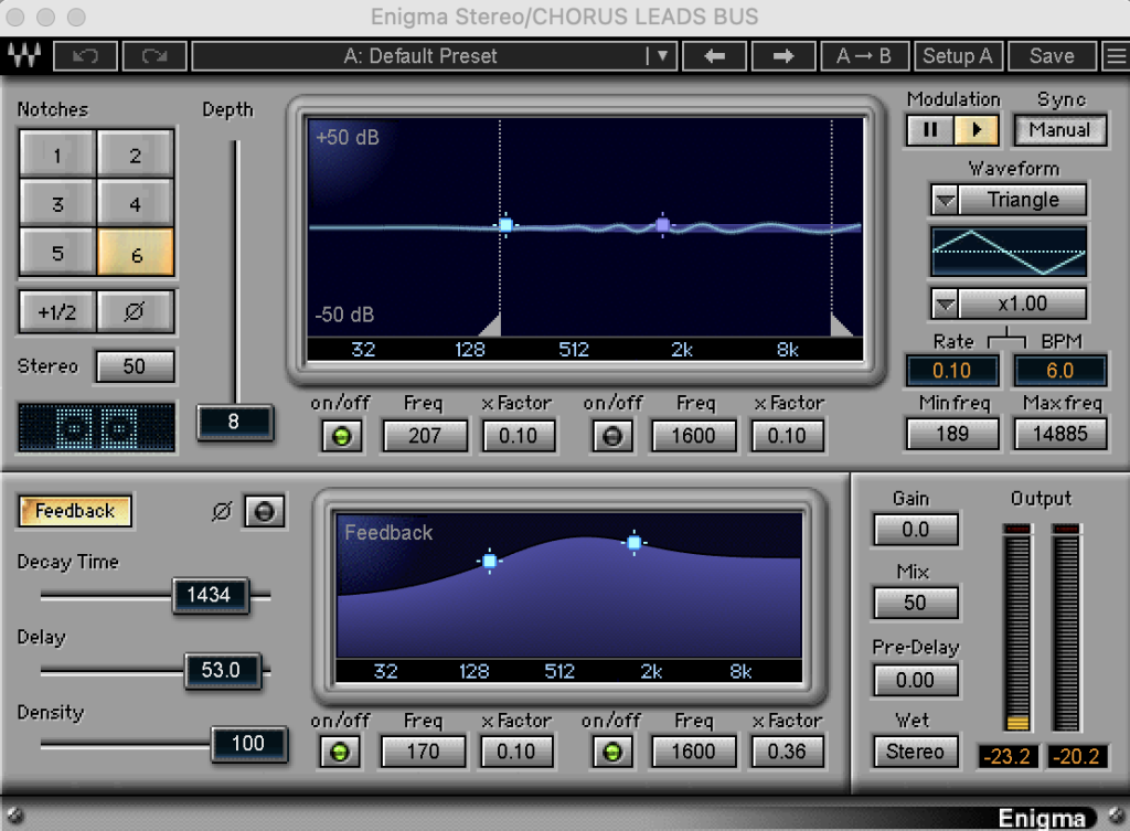 Enigma is somewhat of a mixing and creative plugin made by Waves. It combines comb filtering, modulation, filtered feedback, time delay and a reverb like processor to create unique sonic webs around anything! You can use it on guitars, synths and vocals to create a unique ever moving sound.