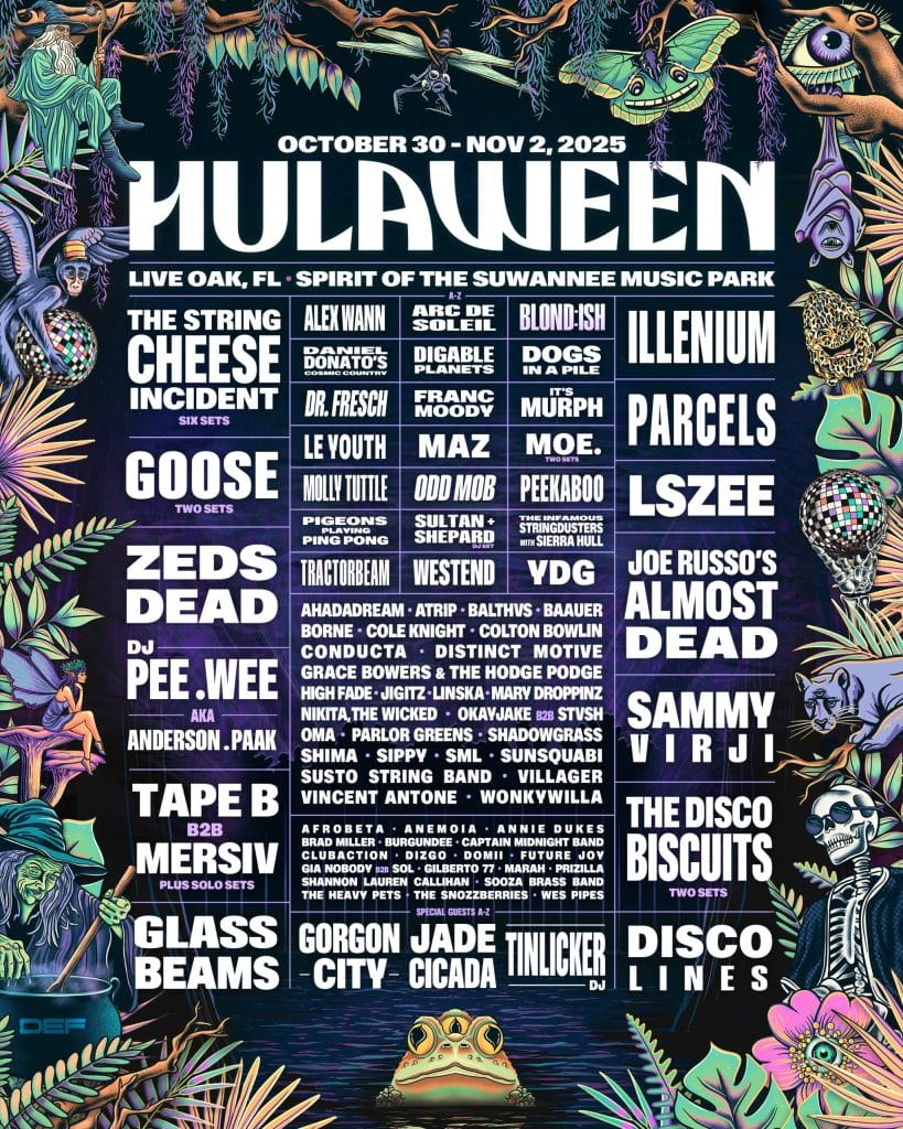 Suwannee Hulaween has officially revealed the artist lineup for its 12th edition this year, returning to Spirit of the Suwannee Music Park in Live Oak, Florida from Thursday, October 30th through Sunday, November 2nd.
