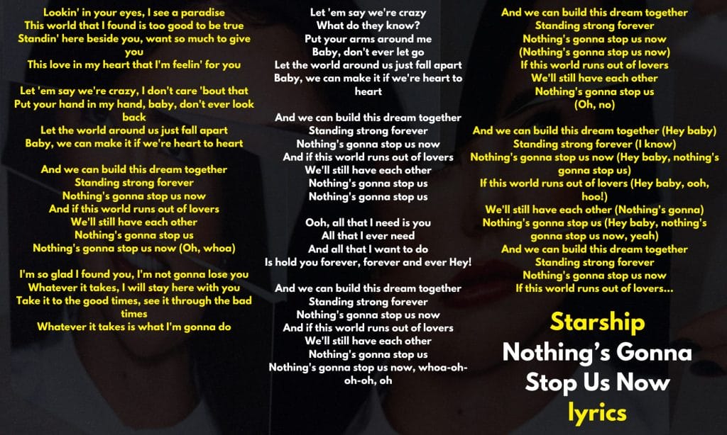 “Nothing’s Gonna Stop Us Now” — at a glance