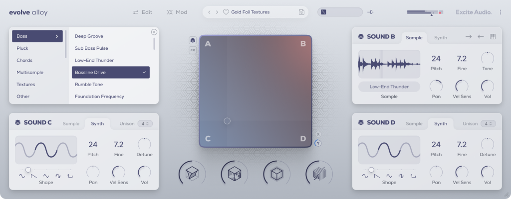 Evolve Alloy feels especially useful for producers who want fast results with enough control to take things further. The quad-layer engine opens up a lot of motion without requiring complex routing, and the XY pad is more than a gimmick—it’s the centerpiece. You can morph between layers with one hand and automate filter sweeps or modulation with the other, which makes it ideal for scoring, breakdowns, or building transition FX from scratch.