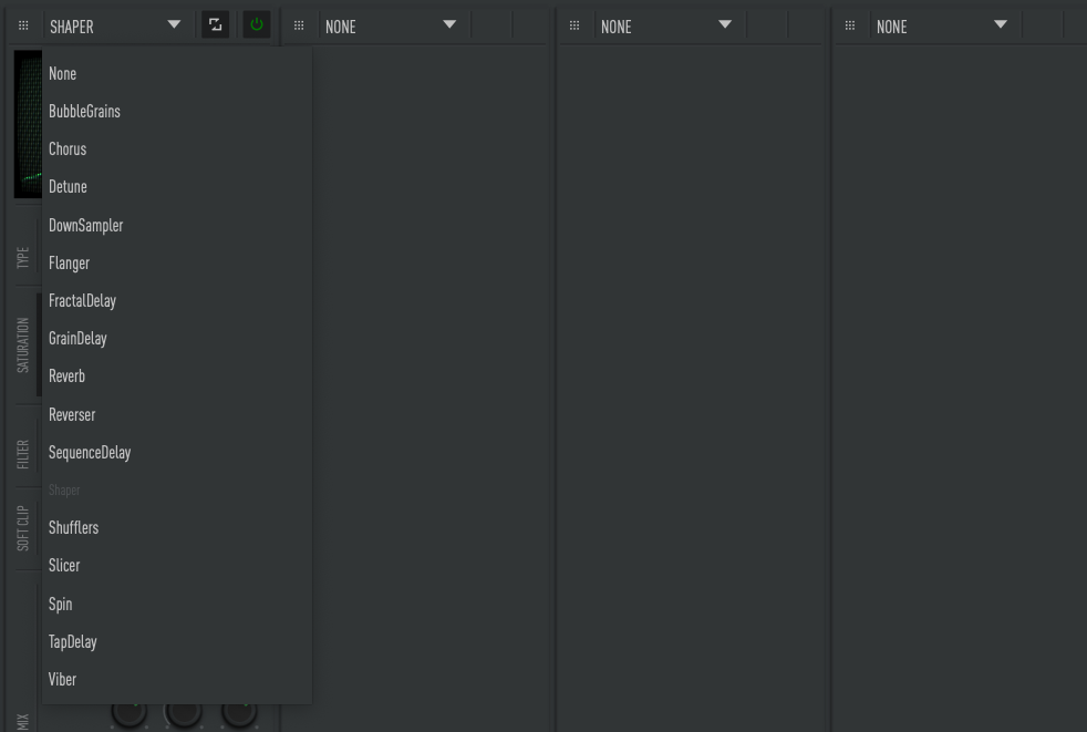 Now, we’re really somewhere. Four effects on one sound. Each module routes into the next one either serially or parallel, or perhaps both. It’s not in this screenshot, but at the very bottom, you can actually crossfade between serial and parallel routing. That’s something I have genuinely never seen before.