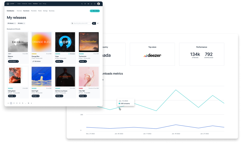 LANDR appeals to artists looking for integrated production tools, high-quality mastering, and straightforward control over split payments. Its flexible pay-per-release option can be cost-effective for occasional uploads, while frequent releasers benefit from the annual plans that include unlimited releases at a highly competitive price.