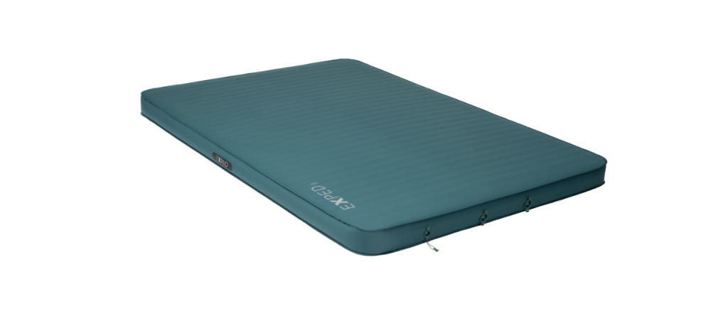 Exped’s flagship Megamat Duo has become known for combining size, warmth, and easy packability. Updated for 2025, the Duo models now include 30% more foam coring to match single versions, which means faster deflation, lighter weight, and smaller packed size. The mat features four inches of open-cell polyurethane foam, giving a soft but supportive feel.