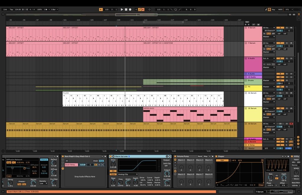 I’m a big fan of the Warm Up Lows effect in Ableton. When paired with an analog clip, a slightly higher-than-usual dry/wet setting and an extra 2–3 decibels of drive can add a rich, warm texture that really enhances your preset.