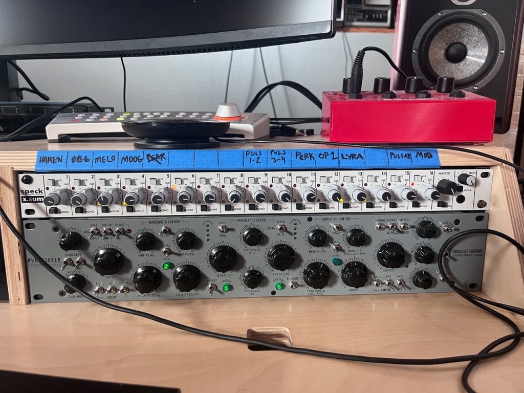I have this set up as an insert (Saunder), so it’s easy to experiment without having to commit. I do this with all my hardware gear. It keeps the process open and makes it simple to find happy accidents that become the backbone of a track.