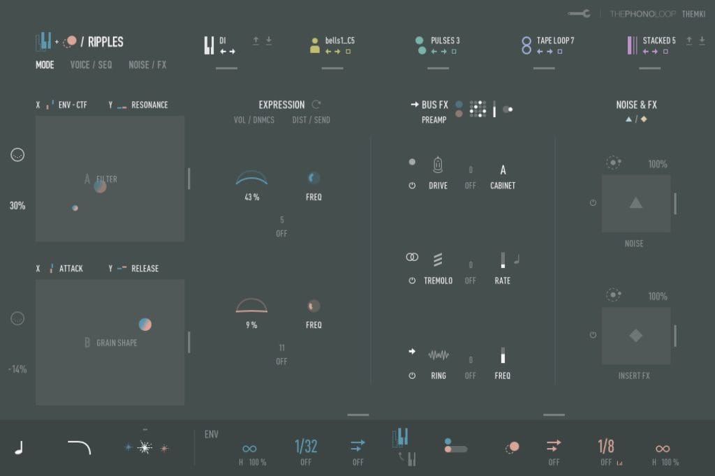 Version 1.1 runs on Thephonoloop’s MPE-ready architecture, which supports MIDI Polyphonic Expression controllers and granular modulation. Users can explore sixteen instrument modes, each designed to balance simplicity with creative depth. The engine’s dual-layer system can operate in Single or Animated (Swarm) modes, combining standard playback with granular sequencing and modulation for evolving textures.