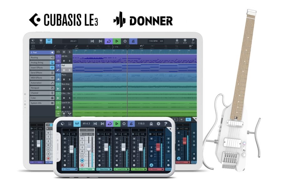 Donner’s HUSH-X PRO headless electric guitar gained new colorways this year: Midnight Glow and Premium White. The model also received the Music China Best Recommended New Product Award. Each new HUSH-X PRO now ships with Steinberg’s Cubase LE, Cubasis LE, and WaveLab Cast at no additional cost. Both the HUSH-X PRO and HUSH-I PRO are now fully supported in Cubasis LE 3.