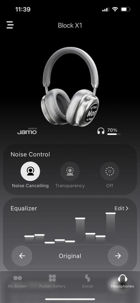 Other buttons available on the side of the headphones are a noise-cancelling enabler and a volume button. You’re also able to plug in a traditional headphone cable if you’d rather not use Bluetooth, but the headphones don’t ship with one, so just be aware of that. You can also control everything inside the app.