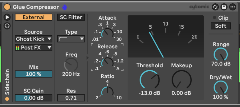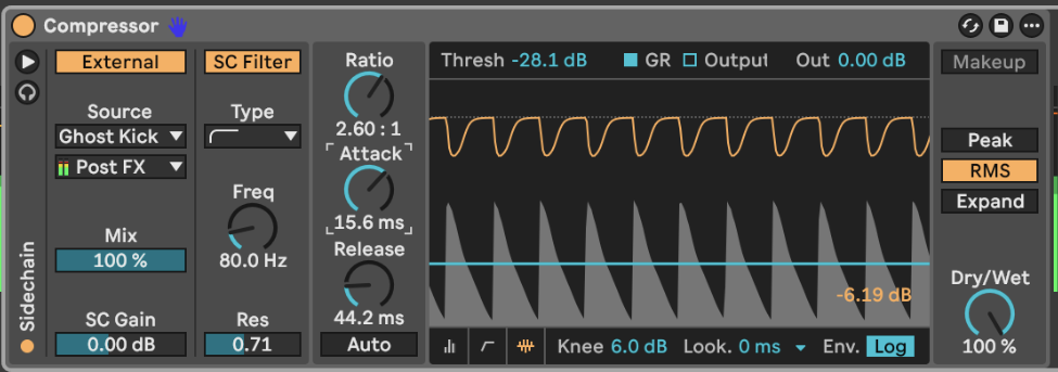 A ghost kick sidesteps that entire issue. Because the trigger remains short and controlled, the compressor responds the same way every time. Sidechain timing stays locked, release behavior remains predictable, and the pumping effect stays consistent across sound changes.