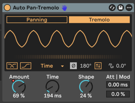 For rhythmic movement without compression, modulation tools can step in. Using tremolo style modulation through devices like Auto Pan set to a fixed phase creates beat-locked movement that remains fully controllable. Automation over depth and rate can transform a static pad into a dynamic layer across transitions without relying on sidechain compression at all.