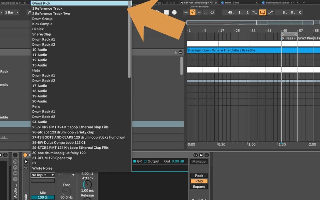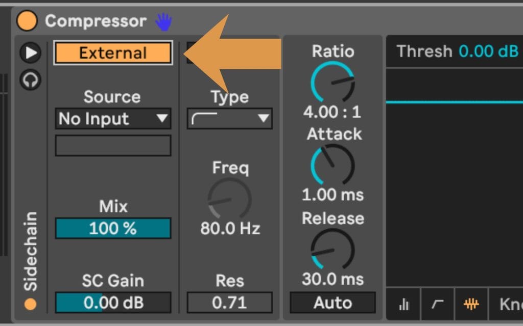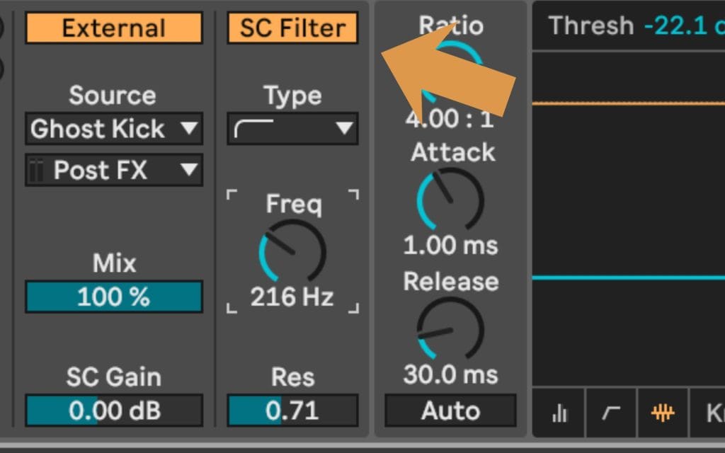 Start by putting Ableton’s Compressor on the track you want to get quieter when something else happens, which is usually a bass, synth, or percussion bus.