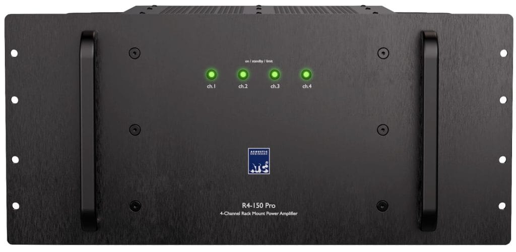 The R4-150 Pro is designed to reduce rack space compared to running multiple two-channel amplifiers, making it suitable for immersive systems requiring multiple speaker feeds. Thermal and DC offset protection, along with remote power trigger support, are included for permanent studio installations.