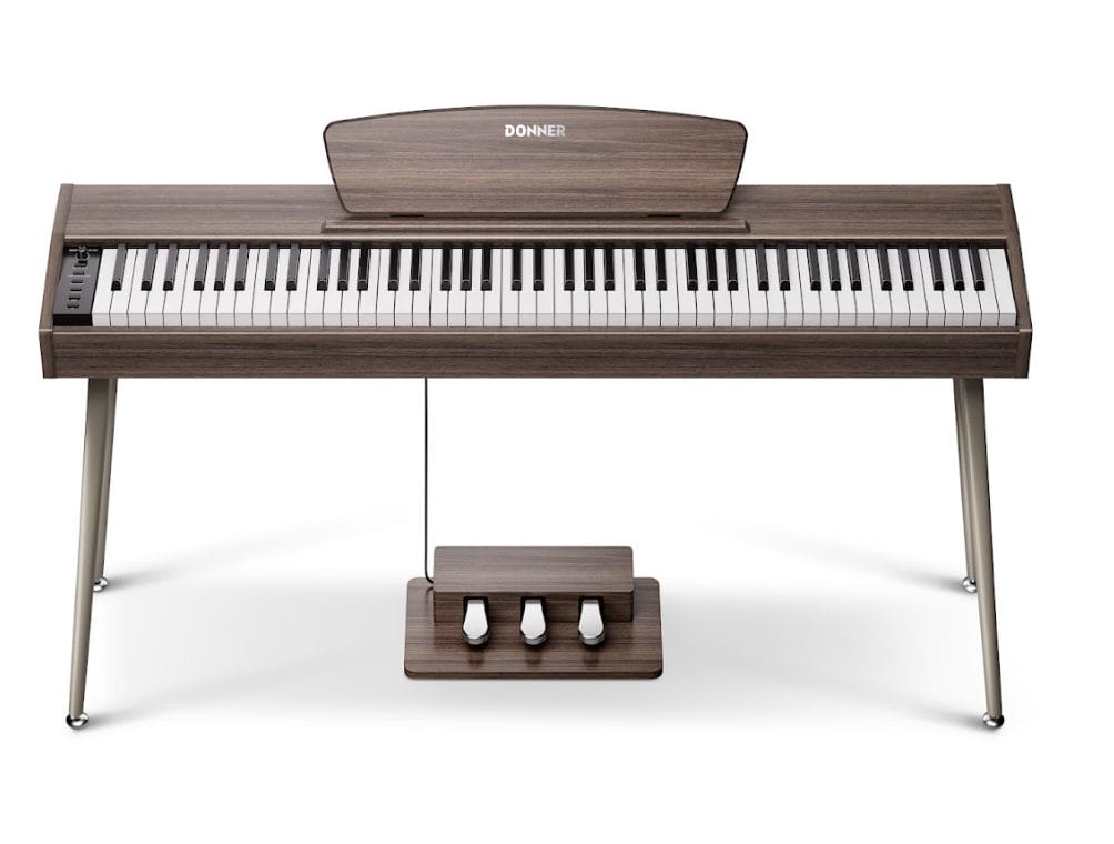 The DHP-300 Pro pushes further into the idea of a digital piano as part of the room rather than equipment that needs to be hidden. Its wood-grain finish and flip-top lid lean into furniture design, while still retaining an 88-key graded hammer-action keyboard and 128-note polyphony. Donner is clearly aiming this model at players who care as much about how the piano fits into their space as how it sounds.