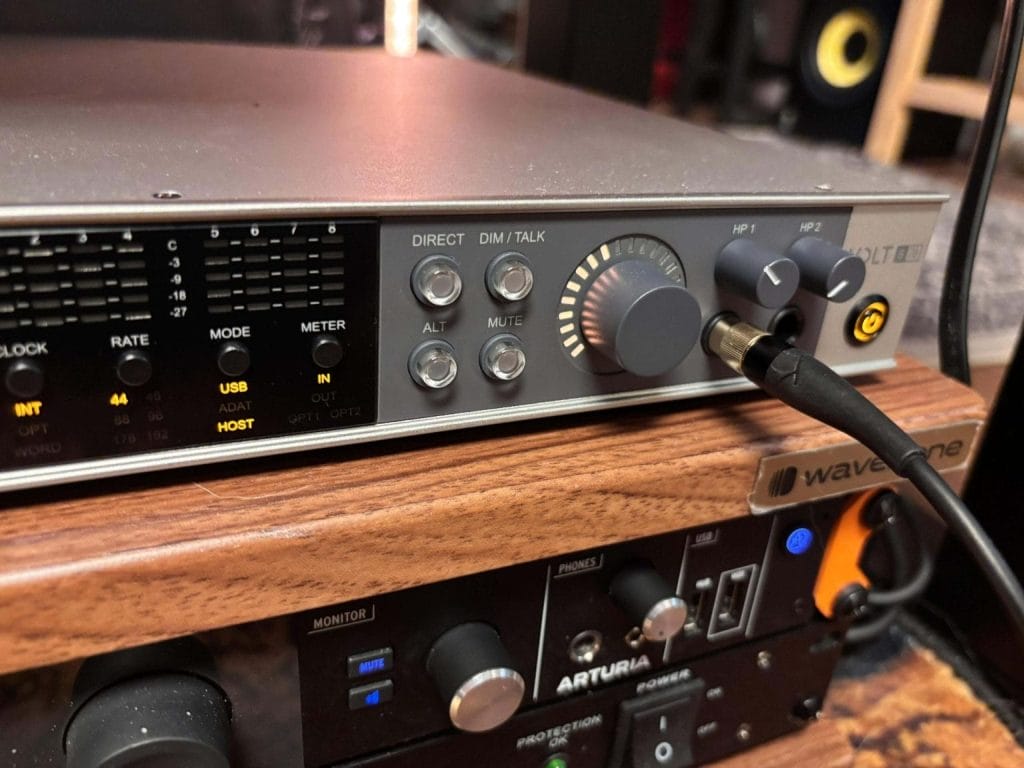 Universal Audio is the brand I recommend when a new producer has outgrown a two input interface and needs a clean move into real multichannel tracking. The Universal Audio Volt 876 gives you eight combo XLR-TRS inputs, eight balanced TRS outputs, ADAT expansion, word clock, and MIDI I O, so it fits a studio that is starting to track multiple synths, guitars, vocals, or a full drum setup. Sure, it might be overkill for some beginners, but I think if you plan on making any big investment into your love of creating music, an interface like this is the best place to put a few extra dollars.