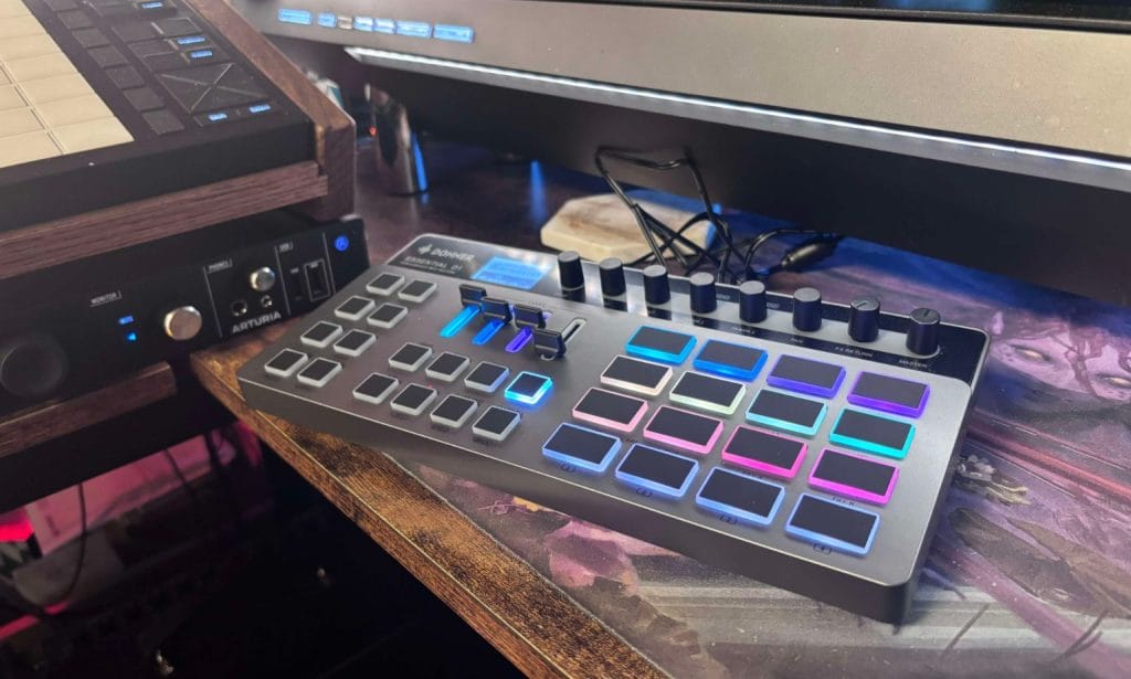 The compact 25-key format and lightweight make it practical for a desk with limited space, and it also fits easily in a backpack for sessions away from the main studio. The 16 RGB pads respond consistently, and the polyphonic aftertouch gives you pressure-based control for drums, samples, and clip launching without extra hardware. If you use Ableton Live, the integration is a core reason to pick this model since it maps cleanly to clips and mixer control, so you spend less time on setup and more time arranging.