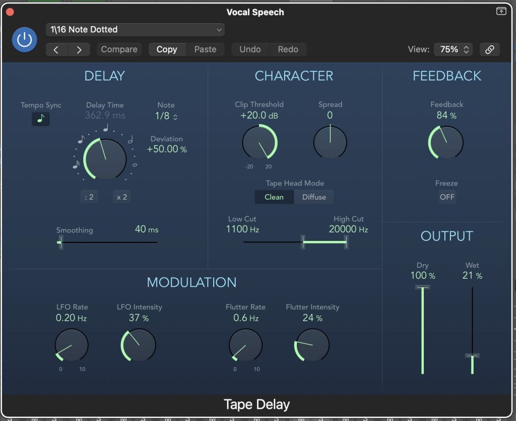 Feedback controls how long repeats keep going. The sweet spot was often between 60 and 85 percent so the repeats almost run away without fully self-oscillating. This creates tension without automation and makes the delay feel alive. Small changes in input cause big shifts in energy, and engineers often rode the feedback knob live.