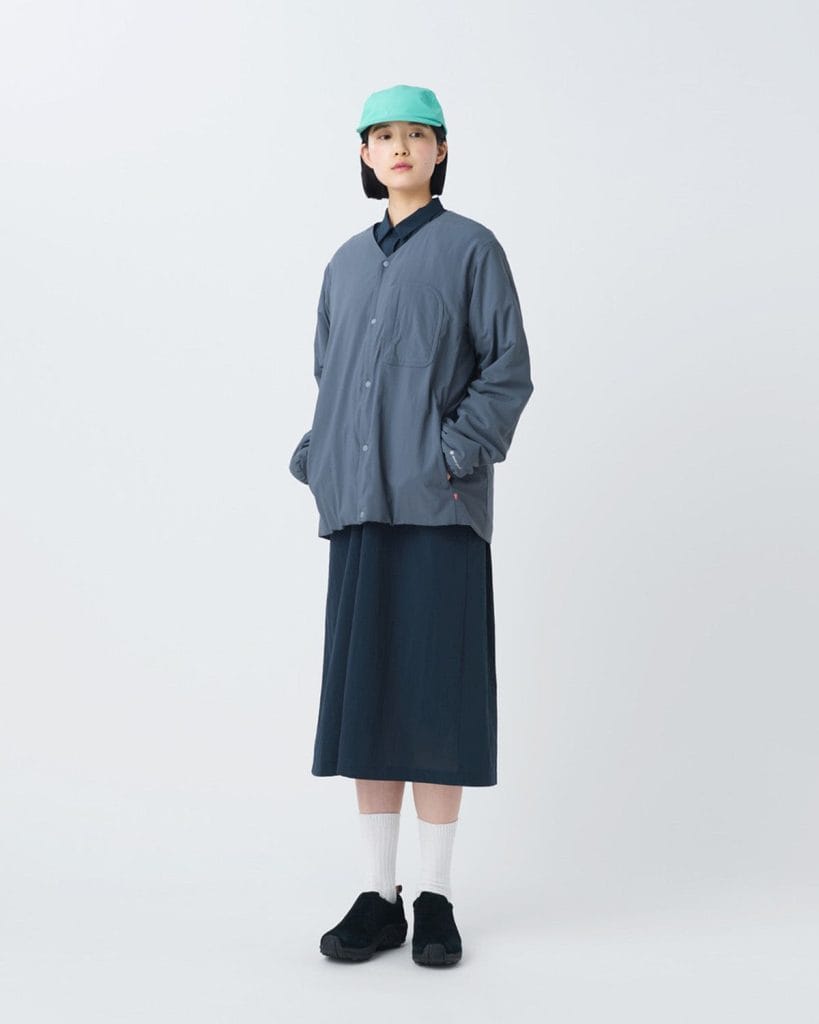 The rest of the collection continues that idea of flexibility. The TAKIBI Herringbone Collarless Jacket introduces flame-resistant fabric with added antibacterial and deodorizing treatment, which supports longer use across different settings without needing constant upkeep. The Flexible Insulated Cardigan focuses on lightweight insulation and breathability, making it a practical option for transitional weather when you are moving between indoor and outdoor spaces.