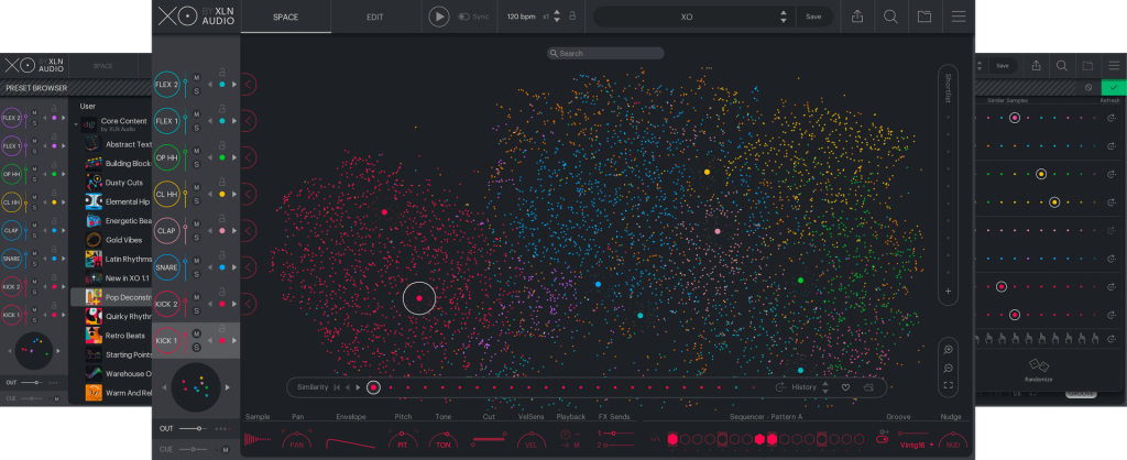 XO belongs in any legit roundup because it solves a very common producer problem that does not get enough attention in marketing buzz. A lot of people have huge folders of drum samples and still reach for the same handful on repeat (I know I do oftentimes), because browsing by folder name is slow and sample pack naming is usually messy. XO attacks that problem through its visual sample map and its similarity-based browsing system. XLN is pretty open when it says XO identifies one-shot drum samples and organizes them by similarity, giving you a route through a library based on sound rather than file structure.