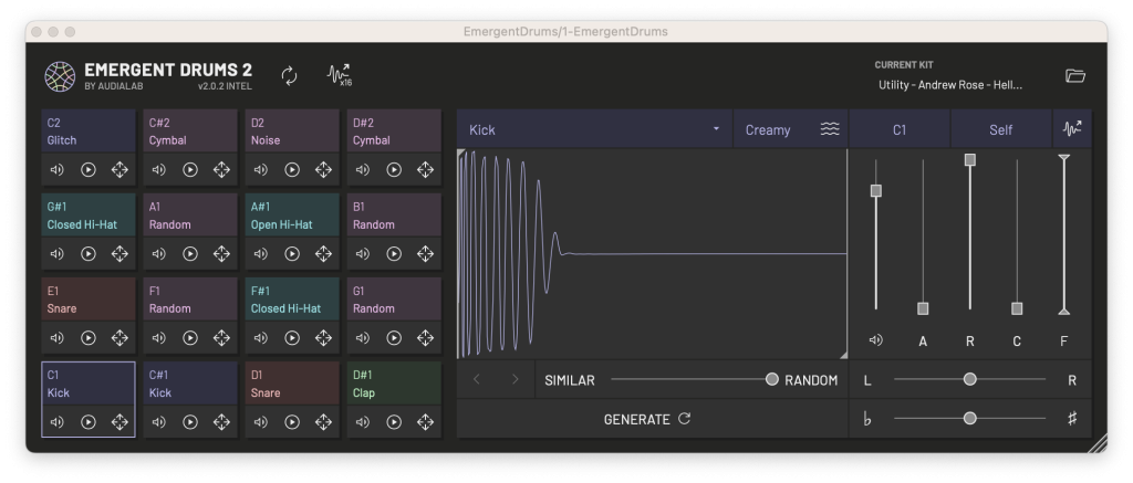 Emergent Drums 2 takes a very different approach from the aforementioned XO, because it is built around generating fresh one-shots instead of helping you navigate a library you already own. I think I would describe it as a generative drum sample engine, and the central pitch is easy to understand: generate infinite, unique, royalty-free drum samples, shape them inside the plugin, and export them into your session. Pretty vanilla summary I know, but hey… it is what it does!