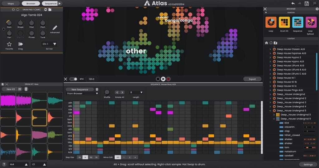 Atlas 2 can embed sample data into the DAW project, which helps avoid missing-file issues later, and the Browser handles content packs, maps, loops, sequences, and drum kits in one place. The Browser Random tools also give you a fast route into random loops, kits, sequences, and mixed combinations, which adds a helpful idea-generation angle without forcing the plugin to pretend it is an all-purpose composer.