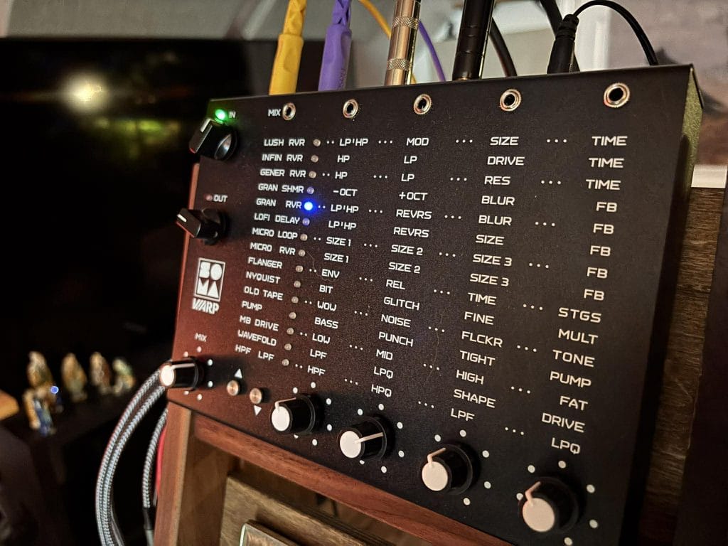 One of the most obvious strengths of the WARP is that its interface tells you what kind of relationship the company wants you to have with it, and that relationship is direct, physical, and fast. The top panel is arranged around input level, output level, mix, algorithm selection, four parameter knobs, and CV inputs, which means the whole unit reads like a performance instrument instead of a system you have to decode. I liked that the active algorithm is always obvious, because the LED system and printed labels make it easy to know where you are at a glance.