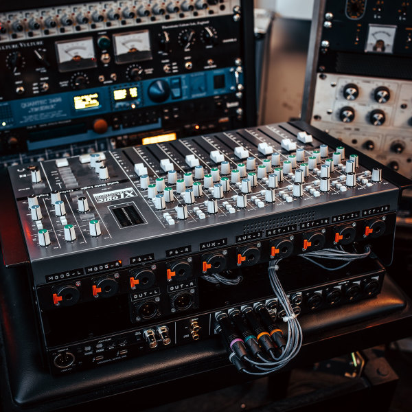 For the interface, I chose a Universal Audio Apollo 8. It is not the most lightweight option, but it offers enough channels and sounds fantastic. All outputs, alongside the synths and the hardware effects returns, are being combined in the SSL X-Desk. I may be the only artist using an SSL live, but I actually find this a bit surprising, as the mixer really checks all the boxes: it sounds absolutely fantastic, it is very rugged, fairly lightweight, and it offers all the routing options I need – including a fantastic monitor section, which can make my life so much easier on stage.